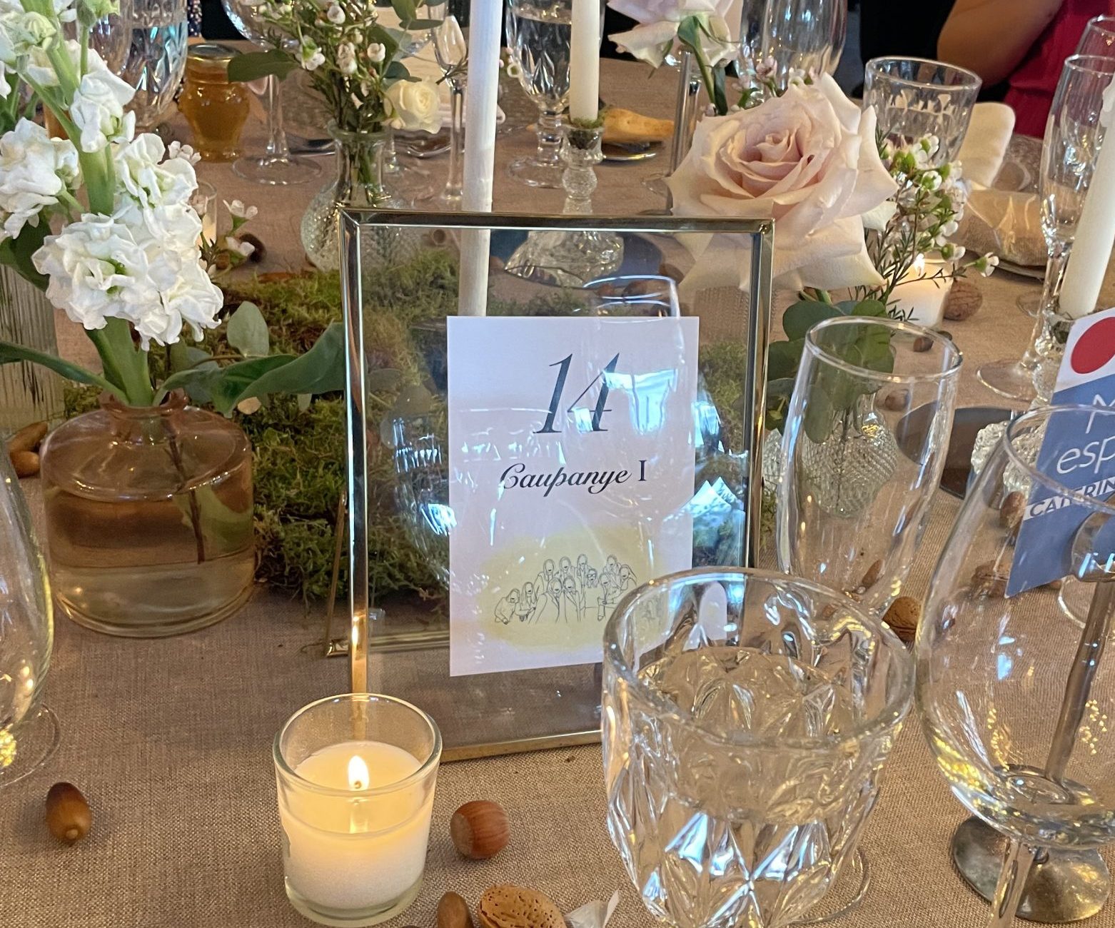 Diseñamos toda la papelería de su enlace, también hicimos las ilustraciones personalizadas para cada mesa.